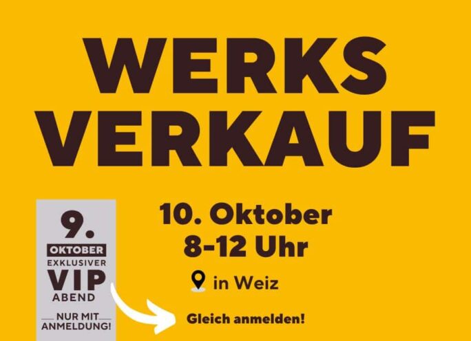 Unser Tipp: Melden Sie sich für den VIP-Abend am 9. Oktober ab 15 Uhr an und wählen Sie als Erstes aus zahlreichen Restposten.