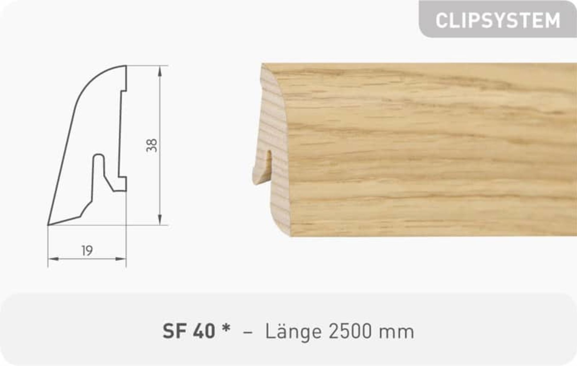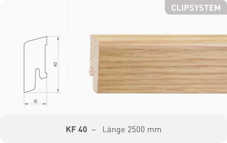 Von schlicht bis elegant – unsere Parkettleisten setzen bei Ihrem Parkettboden den besonderen Schlusspunkt. Sauber und perfekt schmiegen sie sich in unterschiedlichen Ausführungen, Farben und Formaten an die Wand. Klassische, edle Holzleisten mit dem intelligenten Clip-System runden unser Angebot ab. Sie bringen Ihren Parkettboden zu seiner Vollendung.