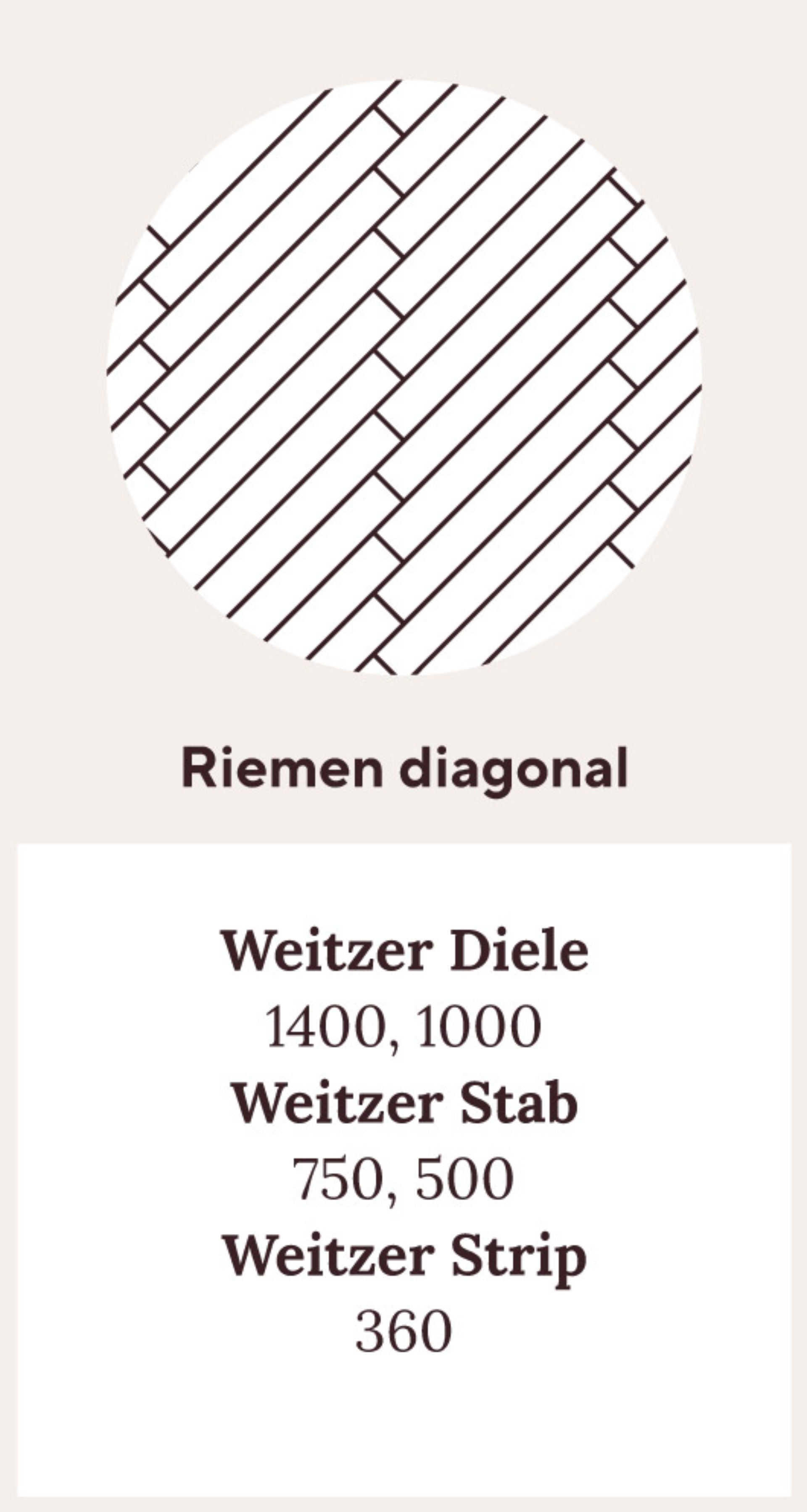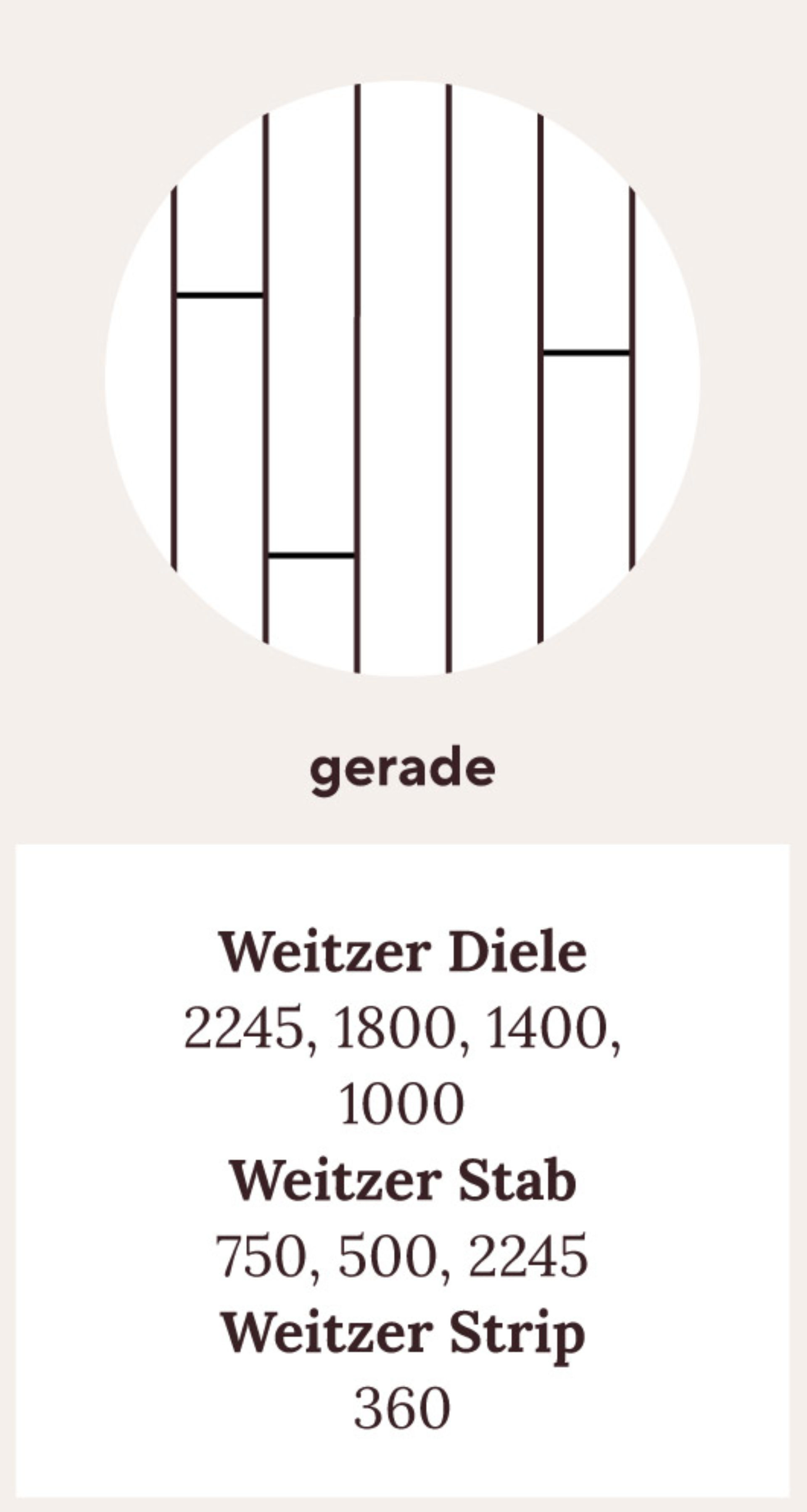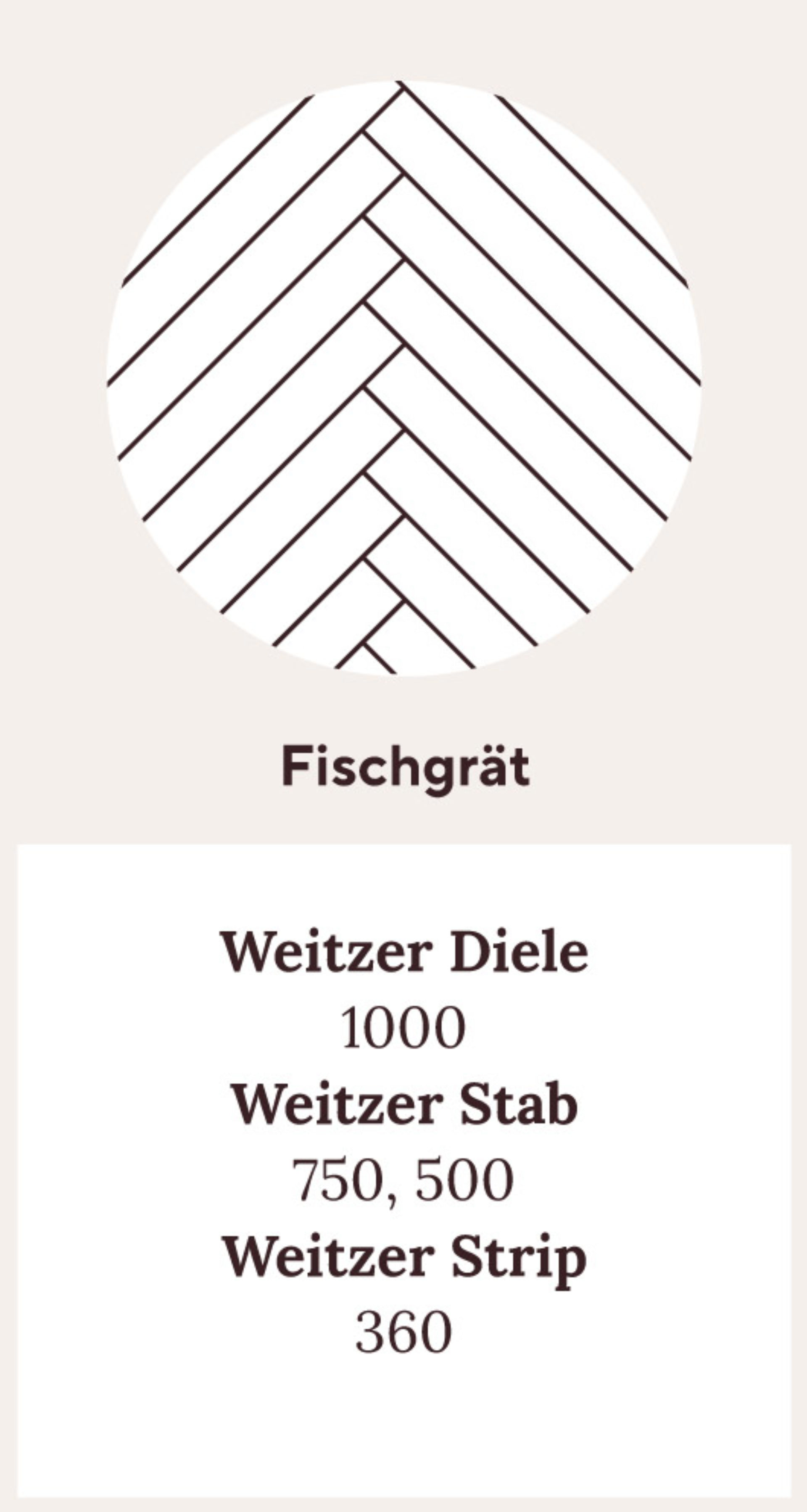 - Alle Weitzer Parkettböden können vollflächig verklebt werden