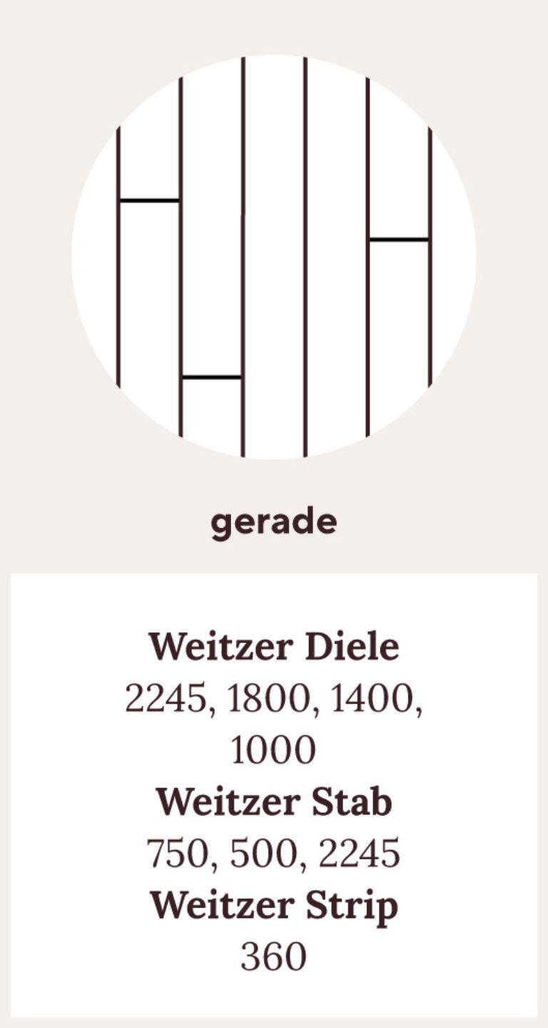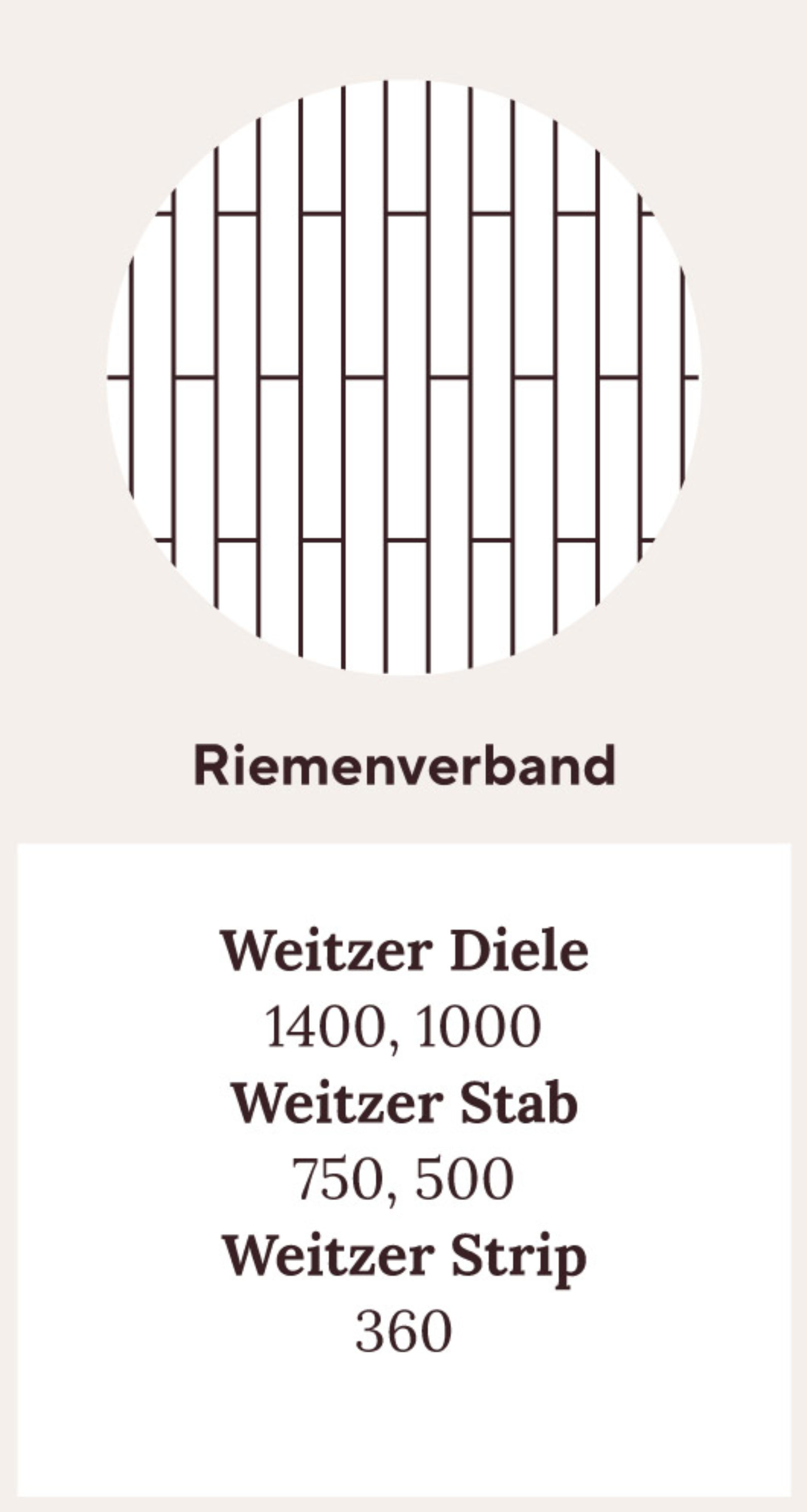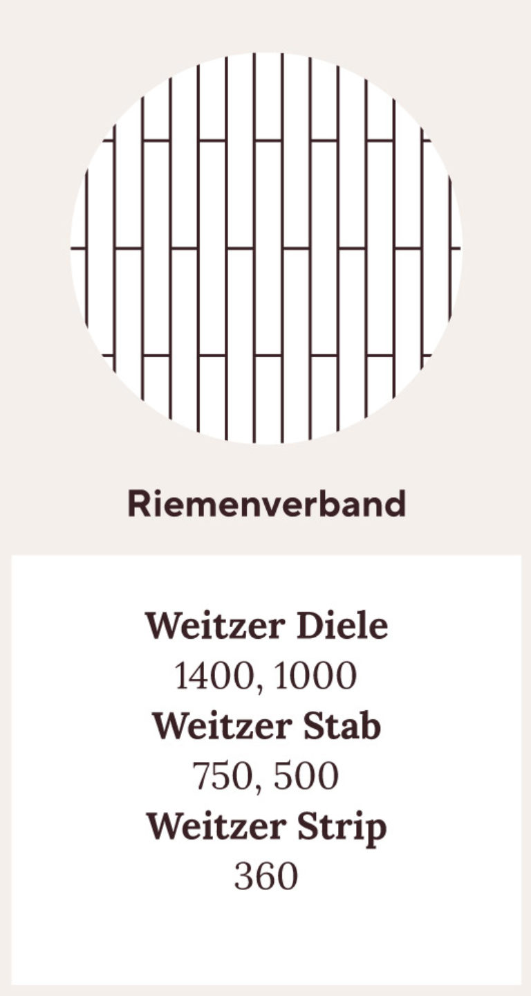 Nachfolgend finden Sie alle unsere empfohlenen Verlegemuster nach Formaten geordnet