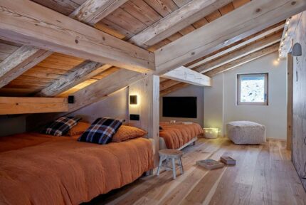 Im Chalet Limanosa im Herzen der französischen Alpen sorgt das Parkett von Weitzer für natürlichen Charme mit alpinem Flair. Die lebhaft bunte Esche der Weitzer Diele 2245 Plus wurde auf 146 m² verlegt und bringt die warme Ausstrahlung des Holzes perfekt zur Geltung.