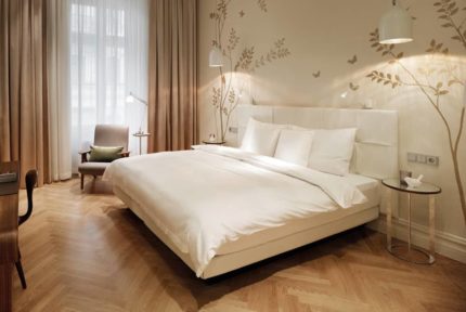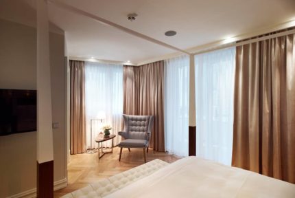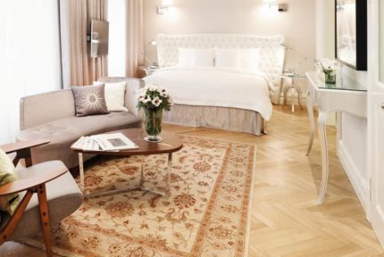 Luxus, Wohlbefinden und zeitlose Eleganz suchen die Gäste des Sans Souci Wien Hotel. Zeitlose Schönheit bietet das Parkett durch die 7-fach versiegelte Oberfläche in seidenglänzender Optik. Dadurch verhält sich das Parkett in Hotelzimmern völlig unkompliziert: starke Beanspruchung machen dem Parkett nichts aus.
