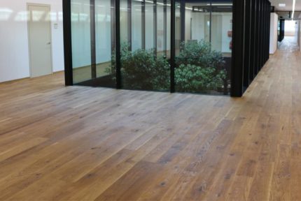 Auf rund 30.000 Quadratmetern erstreckt sich das moderne Mobilitätszentrum mit viel Grün für rund 150 Mitarbeiter: Die Zentrale des ÖAMTC Steiermark in Graz ist ein Ort des gesunden Klimas! 4.500 m² Gesund-Parkett trägt entscheidend dazu bei.