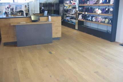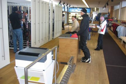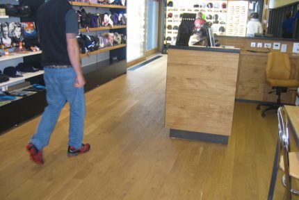 Man könnte von einem Elchtest für Parkettböden sprechen: Auf der Bergstation Ahornbahn betreten die Gäste das Gesund-Parkett fast ausschließlich mit Schischuhen.