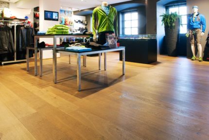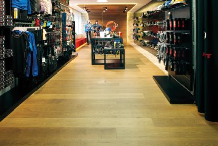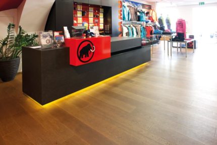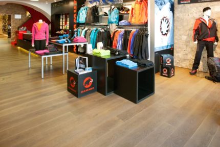 Ein Mammut muss dieses Parkett nicht aushalten, jedoch sind starke Beanspruchungen, wie in einem Verkaufsraum kein Problem für einen Boden aus dem Hause Weitzer Parkett.