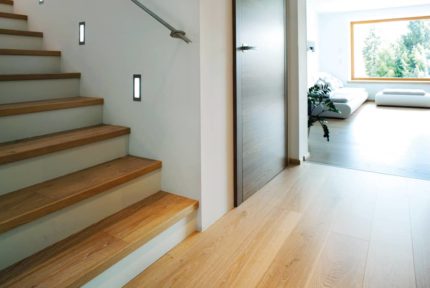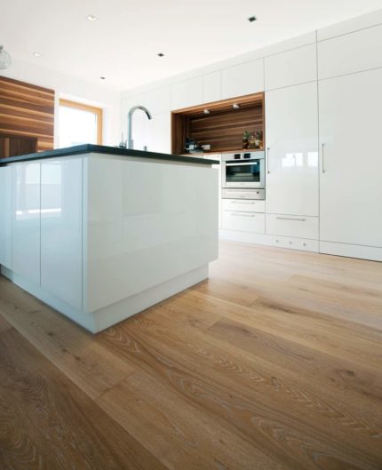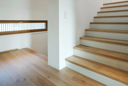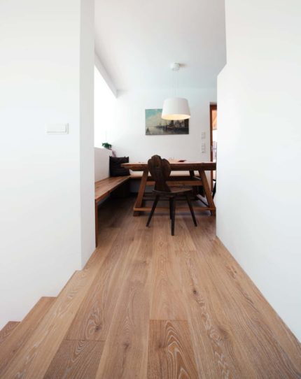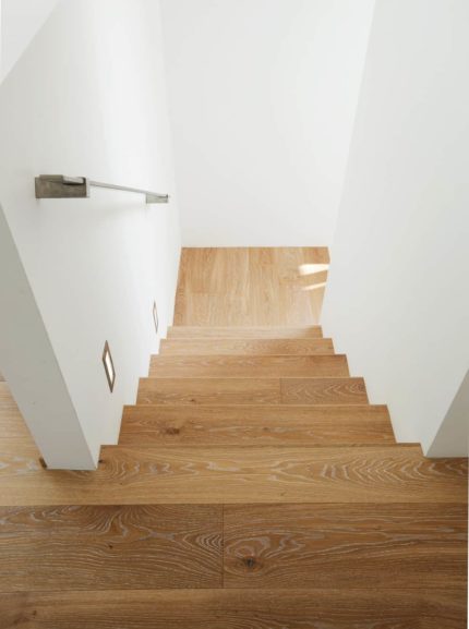 Und weil Design nicht an der Stiege enden muss, gibt es bei Weitzer Parkett Boden und Stiege aus derselben Holzart und Farbe.