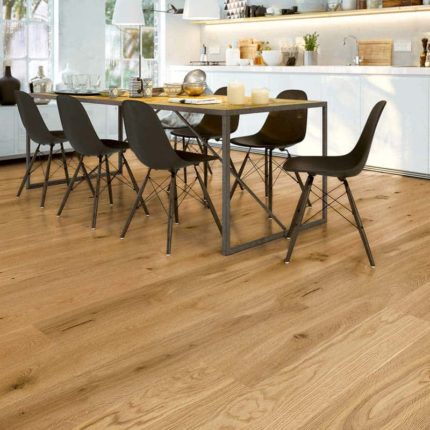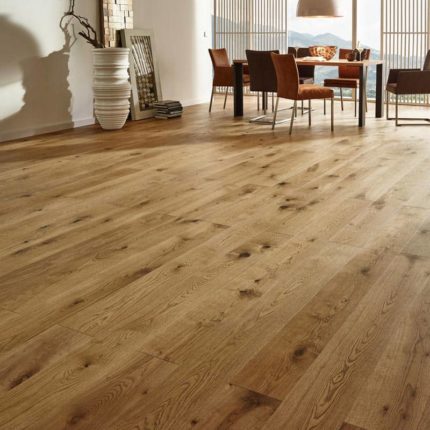 Die härtesten heimischen Holzarten sind Eiche und Esche. Speziell die Eiche eignet sich aufgrund Ihrer technischen Eigenschaften sehr gut. Durch eine Strukturierung der Oberfläche (z.B. Bürstung) wird die optische Auffälligkeit von Kratzern und Beschädigungen zusätzlich verringert.