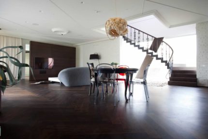 Depuis des siècles, le motif classique en chevron est posé dans les châteaux. Ce qui fonctionne là-bas, est aussi un atout pour votre propre maison. Soudain, une atmosphère impériale s’installe, se mêlant à un mobilier moderne pour créer un véritable miracle du design. La teinte chêne fumé confère de l’élégance. Le parquet est néanmoins merveilleusement simple dans son entretien : un parquet sans entretien qui ne nécessite qu’un nettoyage doux !
