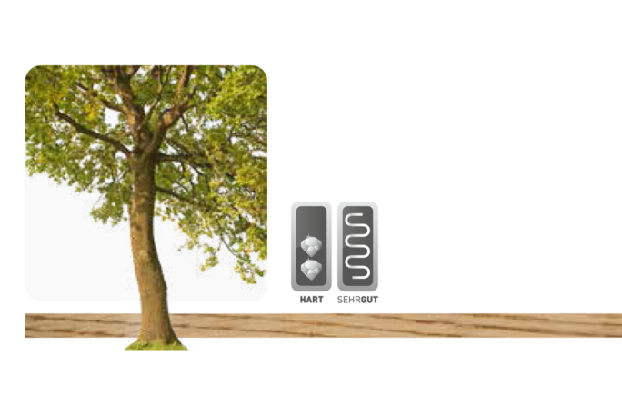 Die charakterstarke, langlebige Eiche zählt zu den wertvollsten heimischen Nutzhölzern. Der zeitlose Klassiker steht für Robustheit – das Holz des zuverlässigen Baumes ist widerstandsfähig, hart, fest und elastisch. Dies bietet eine optimale Basis für die unterschiedlichsten Farbveredelungen. Passend zu allen Einrichtungsstilen und perfekt geeignet für Fußbodenheizungen bleibt Eichenholz für Parkettböden meist die erste Wahl.